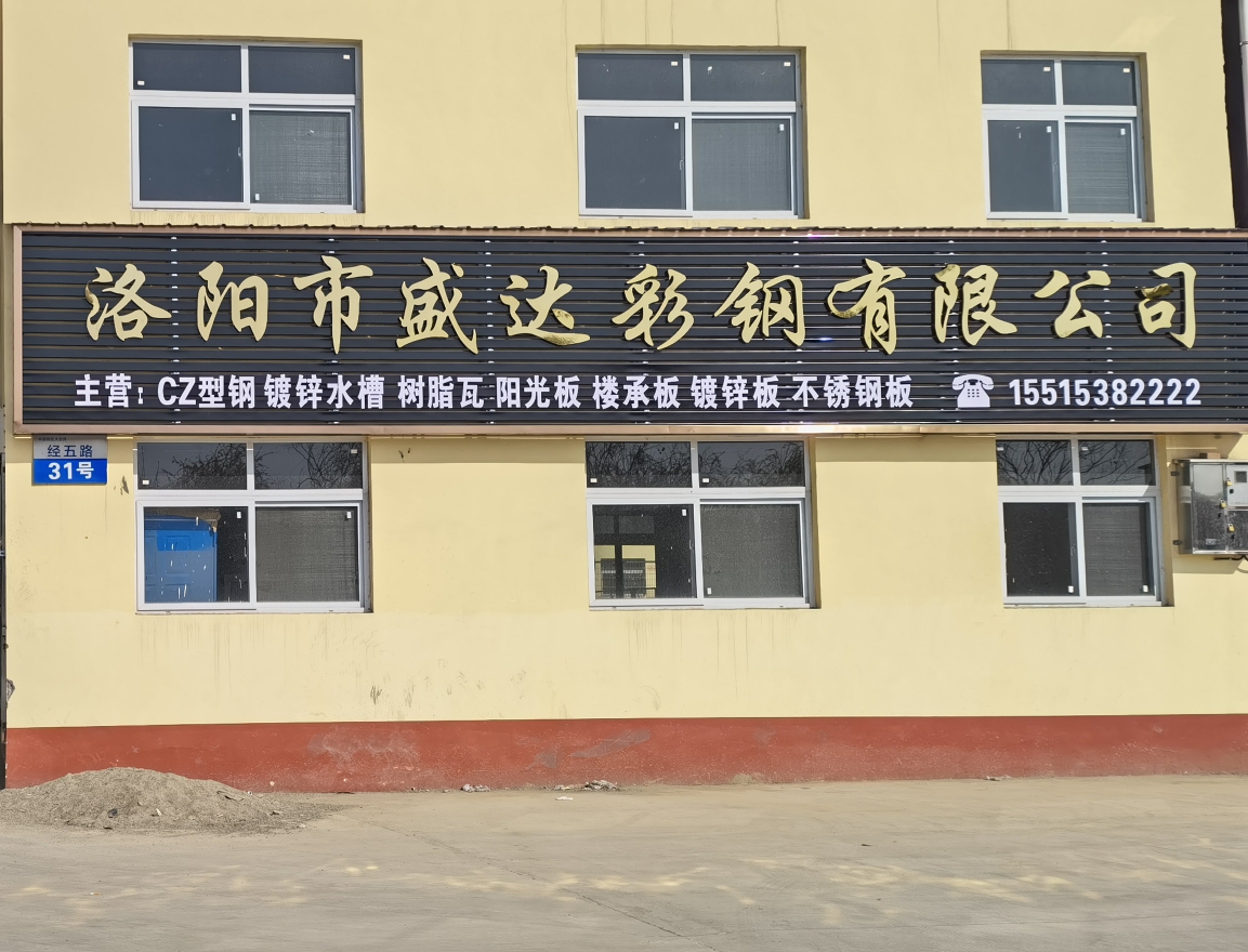 洛陽市盛達(dá)彩鋼有限公司主要從事經(jīng)營: 12米剪版折彎鍍鋅水槽天鉤, 彩涂板、鍍鋅板、彩鋼復(fù)合板、覆膜彩鋼瓦、彩鋼瓦 C型鋼 鍍鋅新型鋼結(jié)構(gòu)的設(shè)計(jì)、加工、安裝 。產(chǎn)品主要用于大、中、小型廠房、樓房加層、超市、倉庫、汽車展廳、活動(dòng)房、農(nóng)貿(mào)市場(chǎng)等工程。